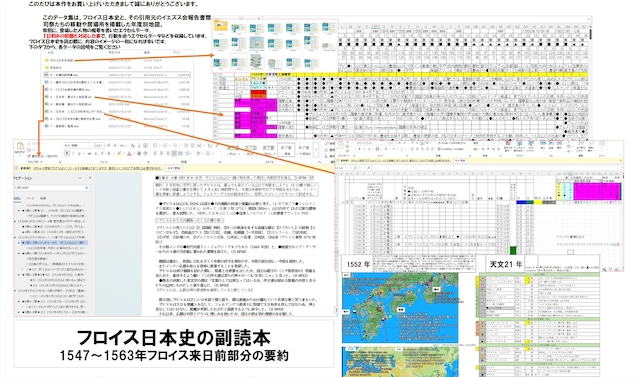 本書はフロイス日本史の内容を要約し、当時書かれた書簡との内容を比べ、どのような事が書かれているかを探す手間を省くことを目指した本です。 内容は第一部1~49章。1547年~1563年7月6日。フロイスが日本に実際に来るまでの部分です。 これまでにフランシスコザビエルが来日して帰還し、インドで従順の命に従わなかった会員の大除名を行い組織改革をしたり、ザビエルが中国で死ぬ前に、マラッカで司令官の横暴な迫害に遭ったため日本史ではあっさりと記述してイエズス会にも不都合な事実を隠蔽しようとした部分も、ザビエル本人の書簡から、教会からも協力を断られ、孤軍奮闘しながら死亡に至る経緯などを書いていきます。 また、書簡では書かれていた人名や日付を注釈として該当ページを日本史にも載せました。 これで元ネタを探す労力がかなり減ると思われます。 また、エヴォラ書簡と呼ばれる書簡を掲載した、16・7世紀イエズス会日本報告集。松田殻一。同朋舎。も同様に要約し、内容をまとめ、日本史にどの部分が利用されたかを可能な限り掲載ページ番号を載せて分かるようにしました。 また現在発行されている中公文庫のように地域別ではなく、フロイスが書いた章順に並べ、エヴォラ書簡集やザビエル文書、フロイス日本史の文庫化の際に削除された解説などを参考に日付や人物名などを補完しました。 これで出来事や、人物の行動の見落としを心配せずに読むことが出来ます。 特にフロイス日本史は同じ章内でも年代が急に前後するので、何年に起こった事かわかるものは全て表記し、記述の時系列を分かるようにしました。 また彼が引用したと思われる書簡ヶ所のページ数も出来る限り掲載し、内容対比が容易になってます。 フロイス日本史の理解を高める副読本として、お役に立てば幸いです。 また、年代別の主要人物の行動を追った地図でその年、誰がどこにいるのか一目で見れるようにし、エクセルファイルにて、一日刻みのユリウス暦と和暦対応エクセルデーター(曜日もあり)を造り、そこに日付のわかる出来事を落とし込んだので、厳密な行動の把握、また西暦と和暦の比較も楽にできます。 フロイス日本史だけでは分からなかった宣教師の事情を深く調べられる研究者の利用にも耐えられる重厚な内容を目指しました。